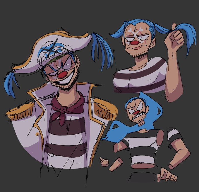 light blue on their design, long eyelashes and really dumb. that's my kind of men. #buggy #buggytheclown #onepiece #onepiecefanart
