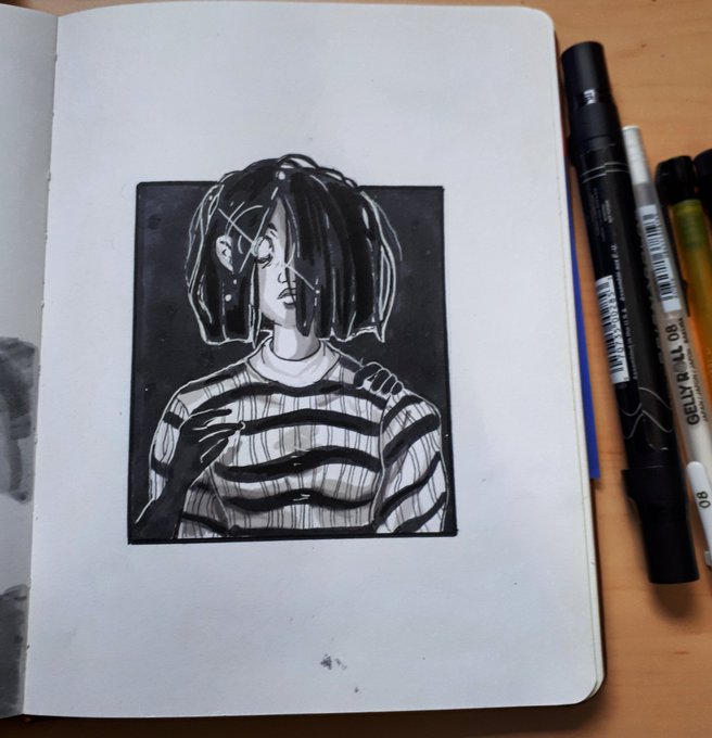 Here's some doodling from the other day. Been trying to practice drawing hair more flowy-like xD #ink #ArtistOnTwitter #Inktober #illustration #drawing #inktoberday29 #illustration #copicmarkers #copic #sketchbook #doodle