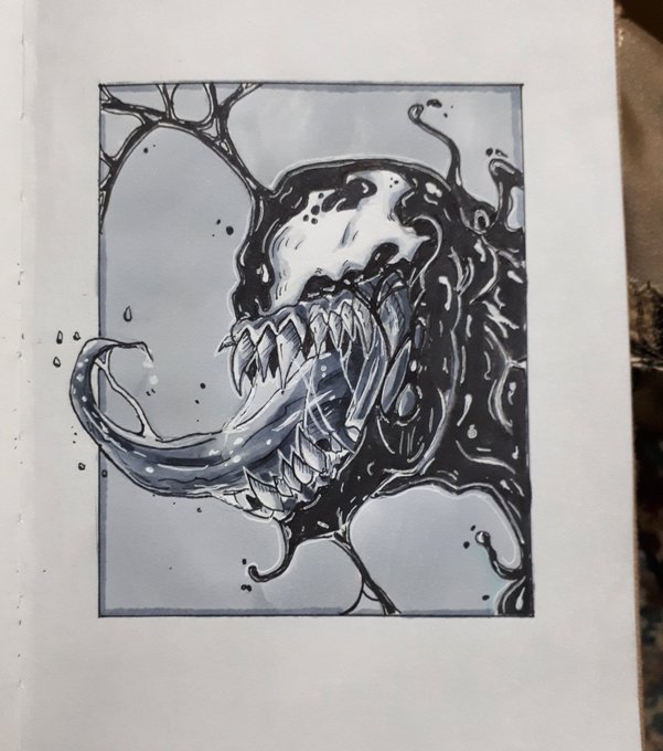 Here's an old venom piece from 2019. Love drawing this freaky fellow. #venom #marvel #spiderman #copic #drawing #disney #sony #TomHardy #TOMHOLLAND #ArtistOnTwitter #art #markers #sketchbook #artist #inktober2020 #Inktober
