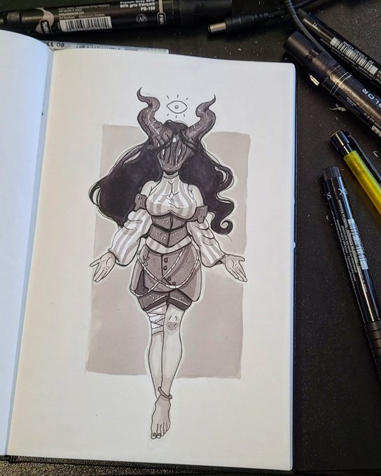 Prompt: Horns Had a blast inking this one! #ink #inktober2021 #characterdesign #sketch #inktober #prismacolor #markers #art #ArtistOnTwitter #inking