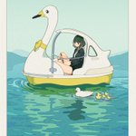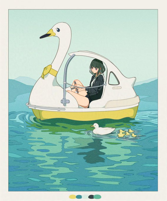 10 30 スワンボートとアヒルの親子 #illustration 23/03/21 22:22