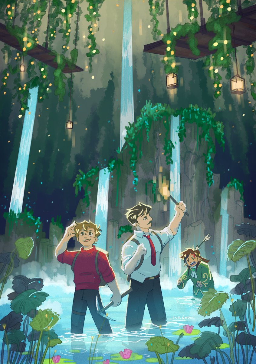 three professional minecrafters explore a lush cave, absolutely nothing can go wrong 😎 #hermitzine #grianfanart #mumbojumbofanart #goodtimeswithscarfanart