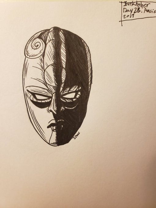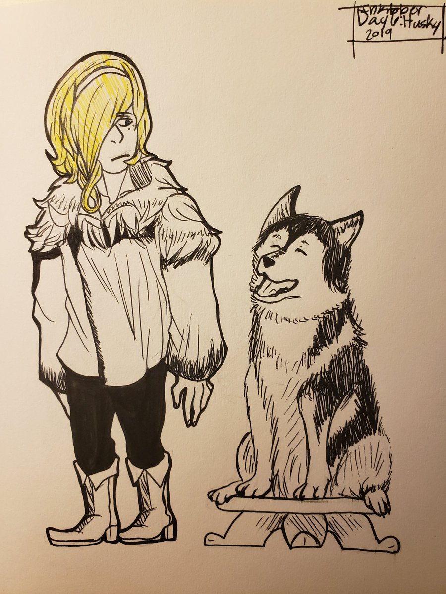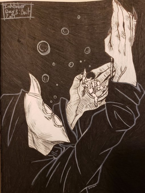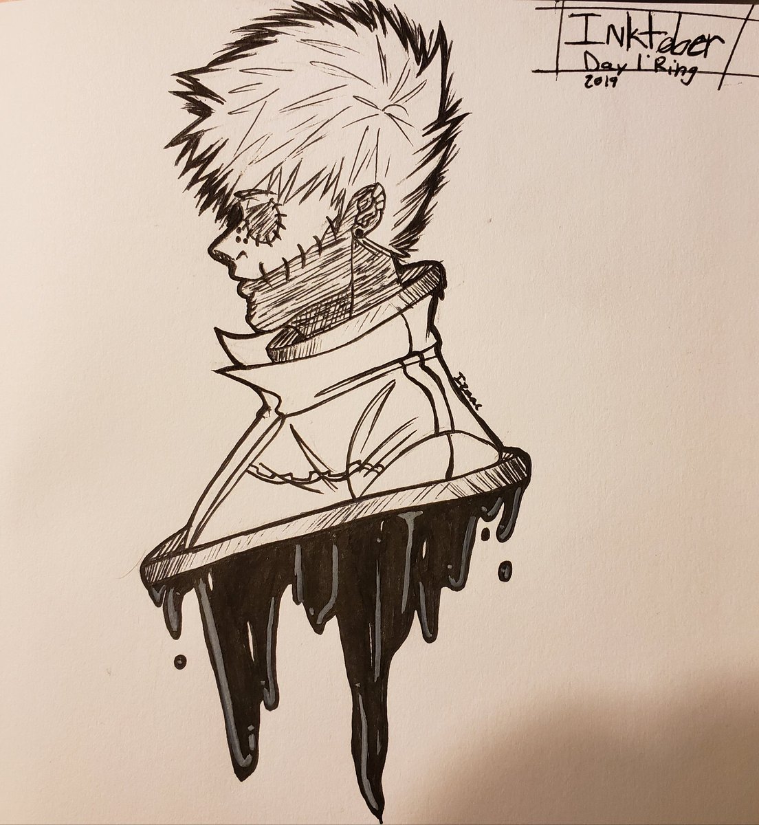 I forgot to color his hair and shirt but it's f i n e This is my first time doing Inktober, but I will make this into a thread and I might miss some days :') #inktoberday1 #Inktober2019