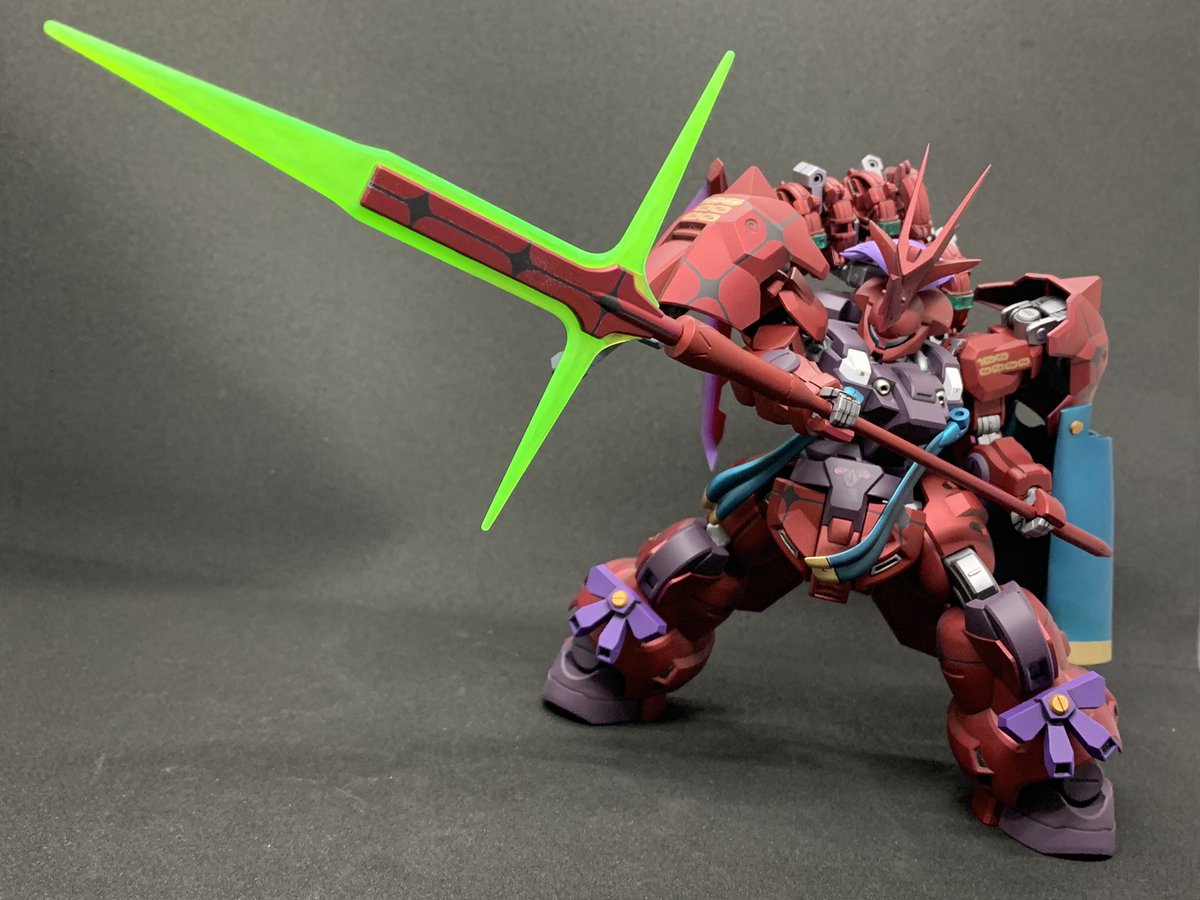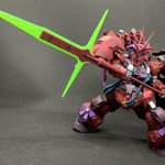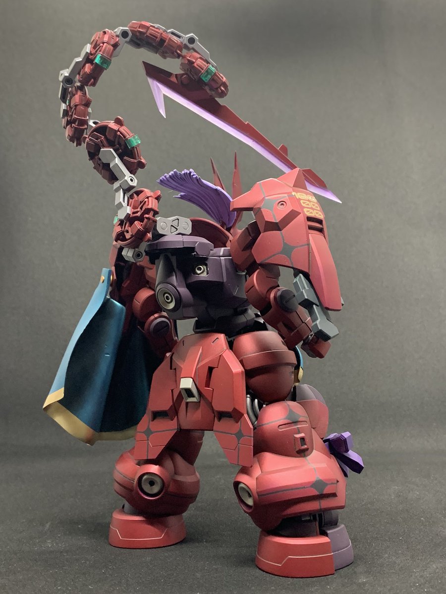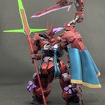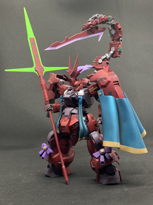 10 31 パルチザンの形がサロメさま💯🦂のお衣装の柄ですわ❗️となり、ディランザ(サロメ専用機)を製作しましたわ✨ 蠍の尾はアクティブマインとガンブレードランスで製作、肩と胸にマント、脚にリボンブースターを追加しましたわ。ツノと羽根飾りも変えております #サロメ百万展 #ガンプラ #水星の魔女 22/11/07 02:34