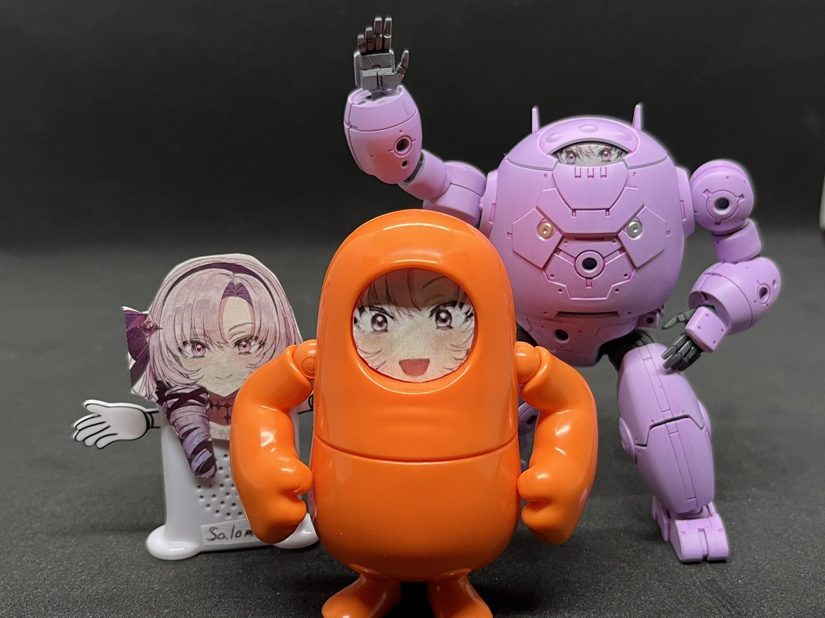 サロメさま💯🦂がおフォルガイ2回目をやるとのことで、あのサムネを #コトブキヤ さまのおフィギュアで再現しましたわ✨ 深夜のおかしなテンションに任せているとこういうことになるんですわ〜💕💕 なお2回目のおフォルガイ配信は延期っぽいですわ💕 #サロメ百万展 #フォールガイズ