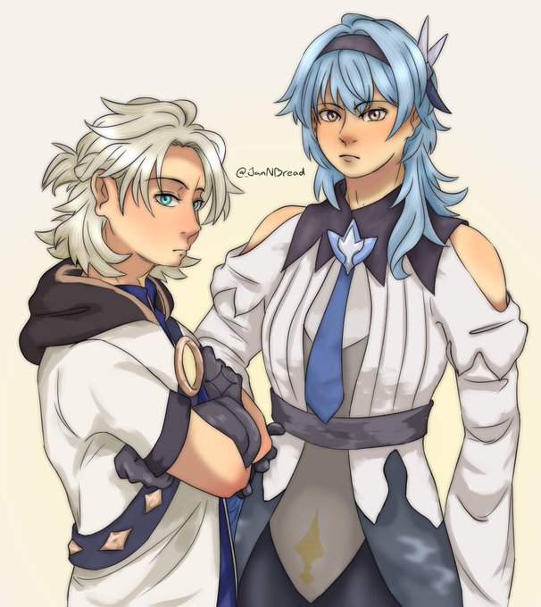 just 3 hot people looking at each other 👀 good luck charm (hopefully) to everyone pulling for albedo and eula!! may they come home today 🙏🙏 #genshinimpactfanart #GenshinImpact #原神 #Albedo #Eula #artmoots #digitalart