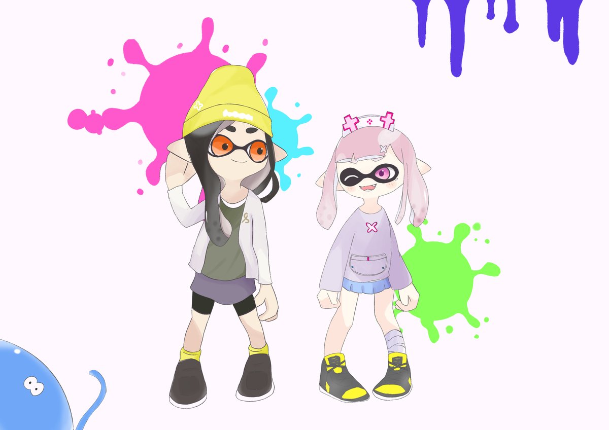 1 19 最近沉迷喷喷无法自拔,然后突然想,如果这俩变成乌贼娘是什么样的,就涂了涂。虽然涂的有些随意,但感觉挺有趣的还是想发出来哈哈哈哈(依旧,不会背景···) #巴絵 #いらすこや 20/09/20 14:31