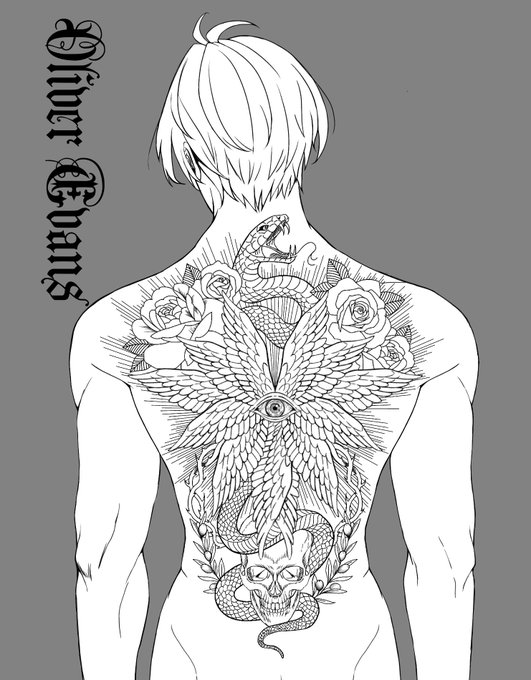 教授の背中にガッツリ刺青あったらいいなという妄想 #絵バンス