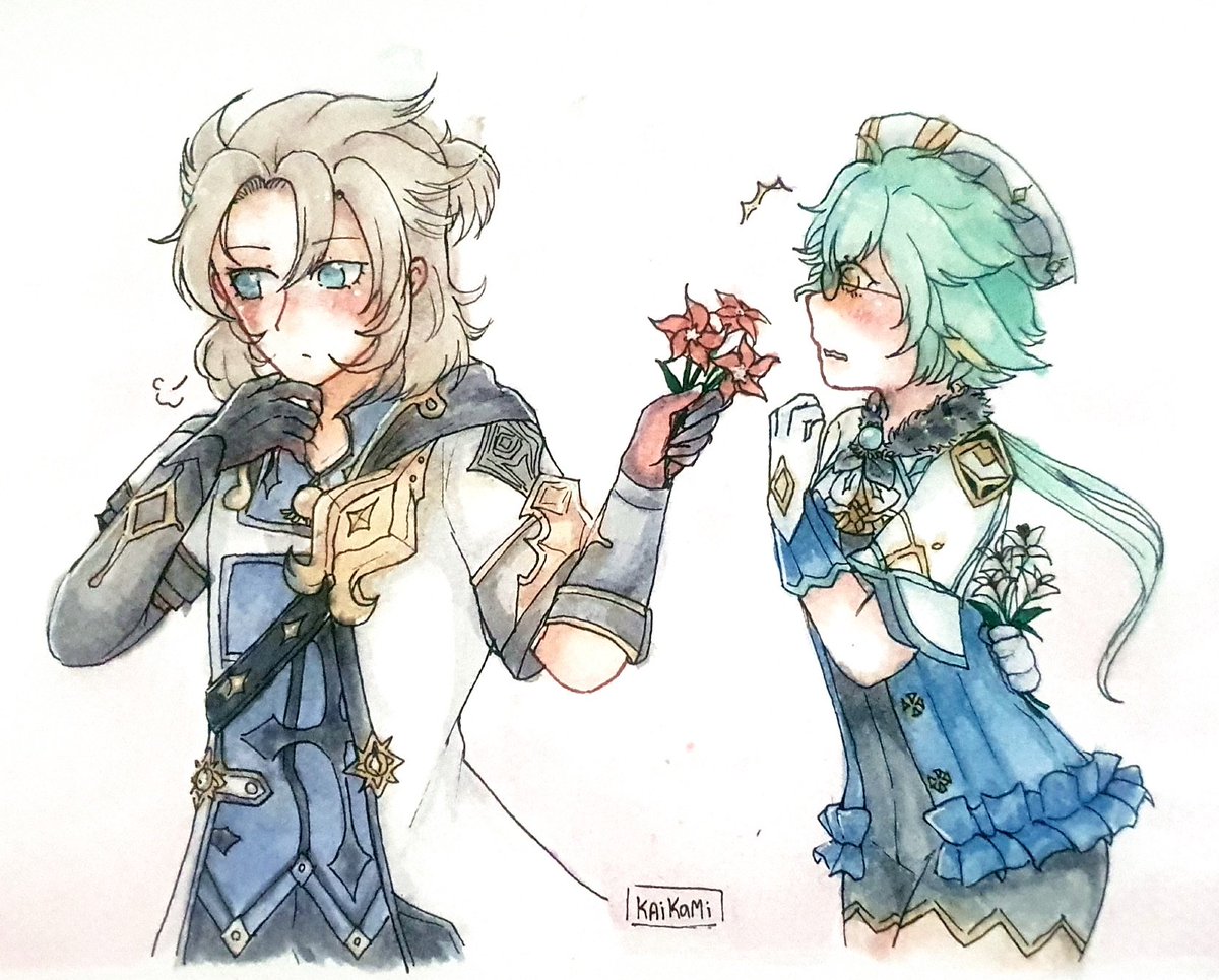 Some Albecrose to heal myself from online school— I messed up on Sucrose,but it's my first time drawing her so it's fine I guess... #GenshinImpact #Albedo #Sucrose #albecrose #genshinimpactfanart #原神