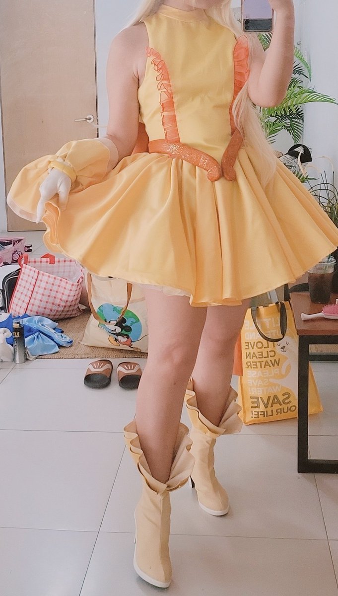 22 1 피치피치핏치 코코 변신의상 팝니다 급하게만들어서 소품비 재료비들만 받고 싸게 처분합니다. 가격 6만원 사이즈 55 구성 목걸이상의 치마 팔찌 리본 장갑 허리 장식(에바로 만들었는데 양테로 고정해요) 신발(230~235) 장갑 치마는 튜튜 내장해서 별도로 패티 안입어도됩니다 안감 가슴패드 잇음 23/06/07 22:20
