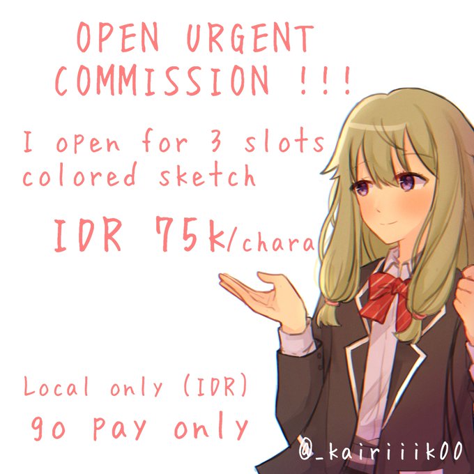 [[URGENT COMMISSION OPEN]] OPEN FOR 3 SLOTS HELLO I OPEN COMMISSION (AGAIN) BECAUSE SOMETHING 🙏🙏 BEFORE DM ME, PLEASE READ THIS OKAY!! #commissionopen #commission #artidn @CmsnArtist_Id