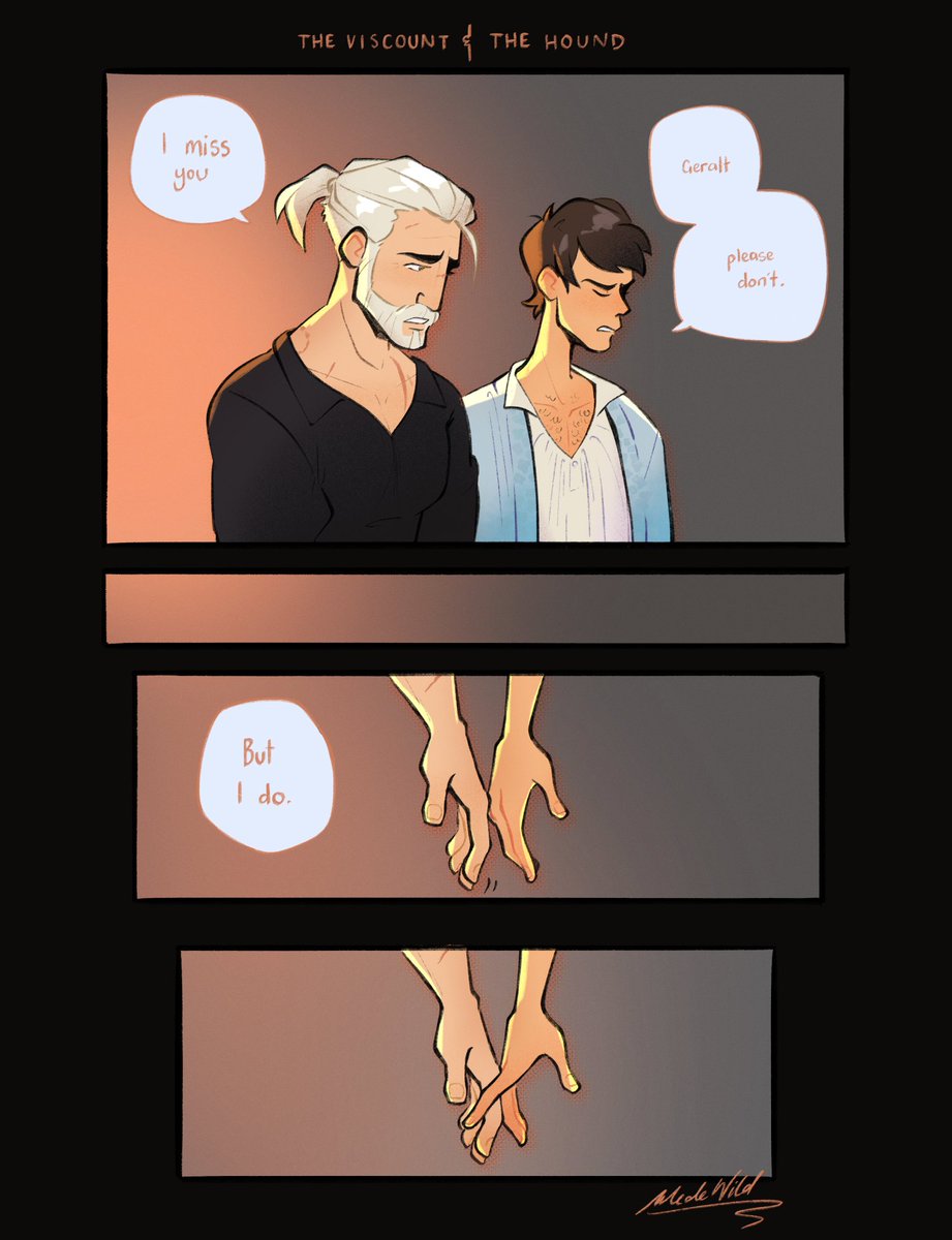 "There was half an inch between their hands, and it felt a mile to reach across, to skim the backs of his knuckles against Julian’s." A moment from @sheepishwolfy's fic The Viscount and The Hound #geraskier