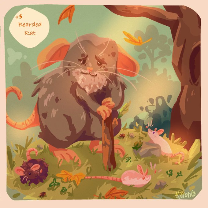 Day 5 is Bearded Rat ! Grandpa's on a walk with the babies 🐀 #digitalart #illustration #ratart #rattober #rattober2022 #beansrattober #inktober #inktober2022 #inktoberday5