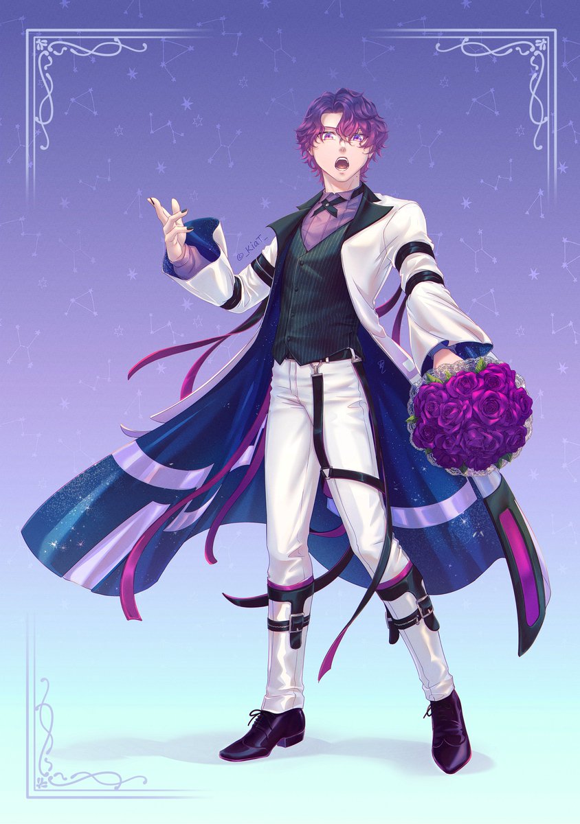 I joined a NijiEn artist collab! we drew the livers in their 1year anniversary outfits and ofc I also chose my oshi!!🔮💜 ( I didn't understand how those belts work, I tried😂) #VioletAtelier
