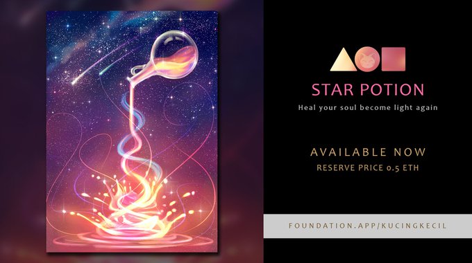 Hi everyone, This is my first for #NFT art drop @withFND ✨Star Potion is my early work which special to me, because it made me decide to do more starry art✨ Now Available on foundation.app/@kucingkecil/~… #NFTdrop #withfoundation #nftart #nftcollector #NFTCommunity #NFTartists
