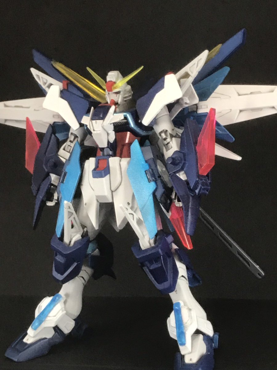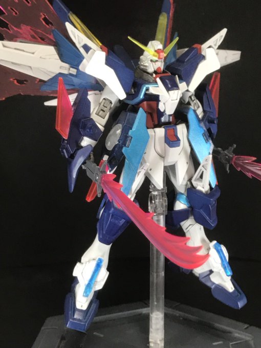 #俺デスティニー改造計画 #ガンプラ 完成したので参加させてください!! レジンで複製してクリアパーツ化に挑戦してみました! アライブ・デスティニーガンダム イズナ・マモルが周りの協力を得ながら完成させたイズナ・シモンの新たな専用機。 シモンに合わせて近接特化になっている。 以下説明
