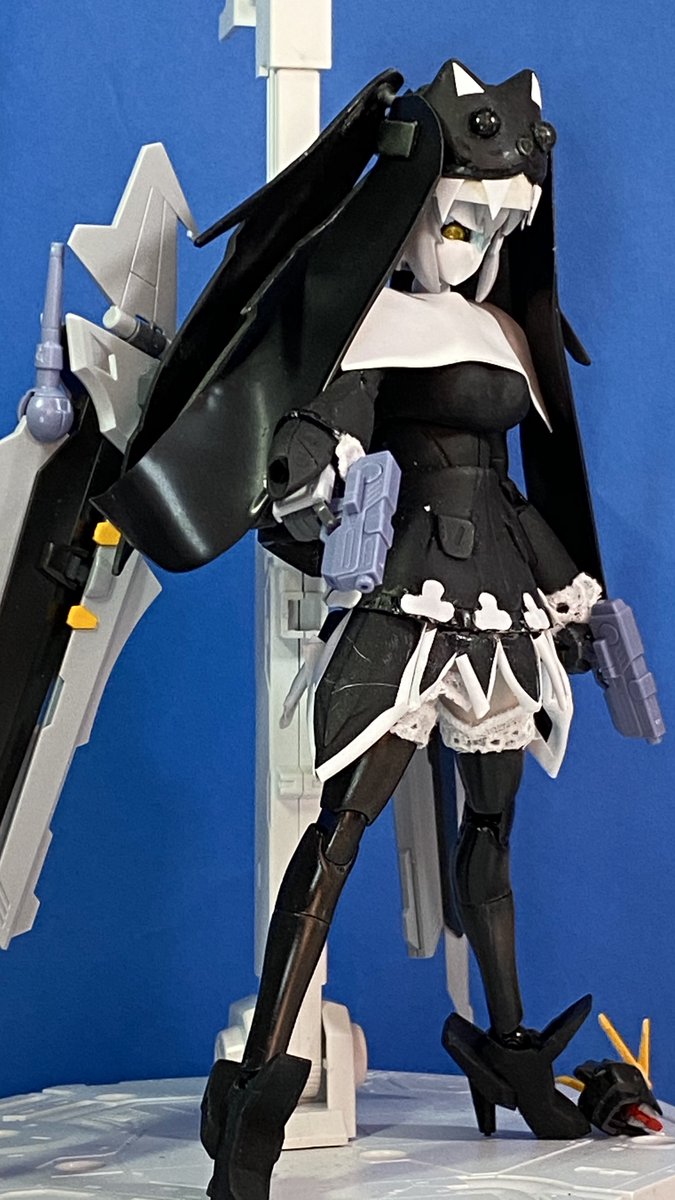 #デジモンガンプライズ #ガンプラ Sノワールです、通してください。 トップコートすれば一応完成なのにこんな事して遊んでて進んでません! 後すーぱーふみなのエプロンパーツ塗装がポロポロ剥がれるから嫌い!