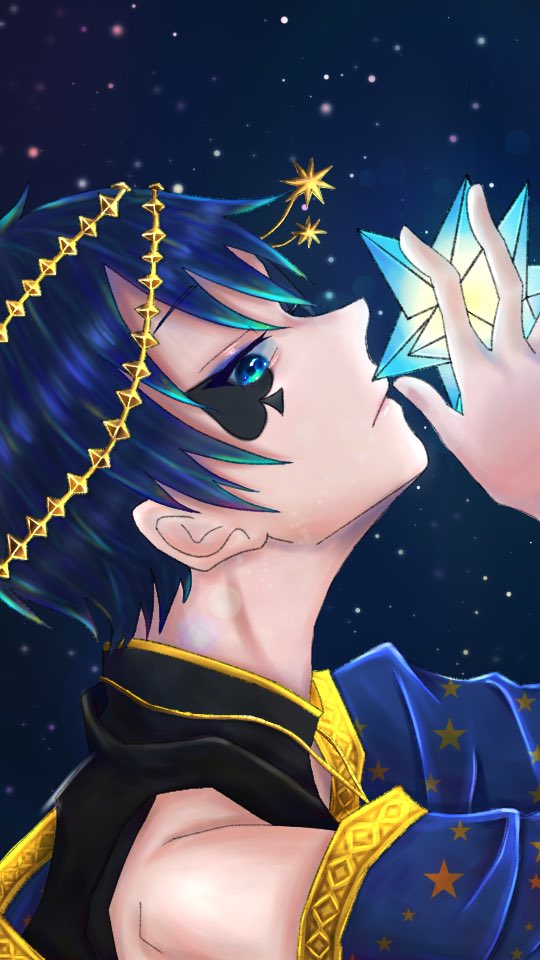 今日、ほんとに真面目にデジタル練習しようと思って。 描いた デジタル初心者にしては、、良き…!であってほしい🥺 まあ、まだ下描き?なんだけども。 #ツイステファンアート #デュース・スペード #星に願いを #イラスト
