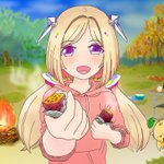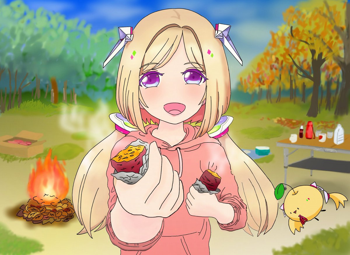 12 64 安直ですが、 食欲の秋&落ち葉で焚き火 ある日ある場所にて… 秋の味覚を更に求めてみんなは出掛け隊長と二人で火の番をしていると… ひとつだけ味見をしてみようと焼き上がったものを半分(?)差し出してきた……みたいなイメージ😅 #アキの文化祭2018 #アロ絵 #アキロゼ 18/11/20 06:44