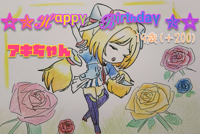 めっちゃ遅いけど記念配信まだだから...大丈夫よね? PCが本格的にダメっぽいのでアナログで描かせてもらいました。 未熟な分は気持ちで上乗せ~🎶 アキちゃんおめでとうございます🎉🎉🎉 #アロ絵 #ロゼ隊