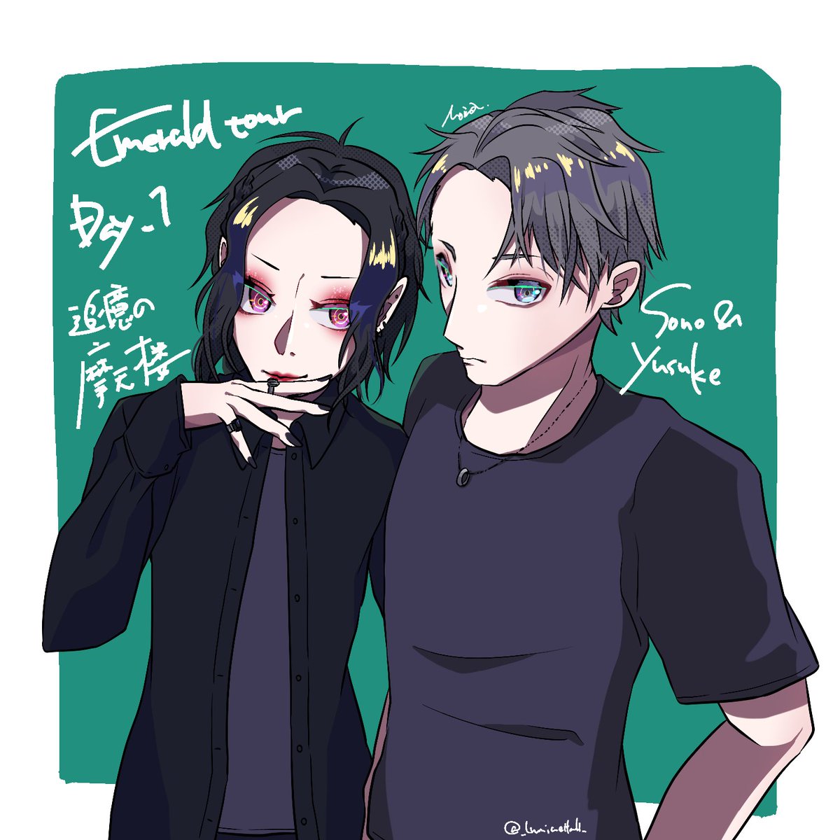 おそのさんのお誕生日のお花用にイラスト描きました✌このフォント使いたかったので満足!意図せず今日のおそのさんの装いに近いコーデだったりして謎のシンクロニシティを感じてニコニコしてしまいました。 #V系ファンアート #摩天楼オペラdeライブ