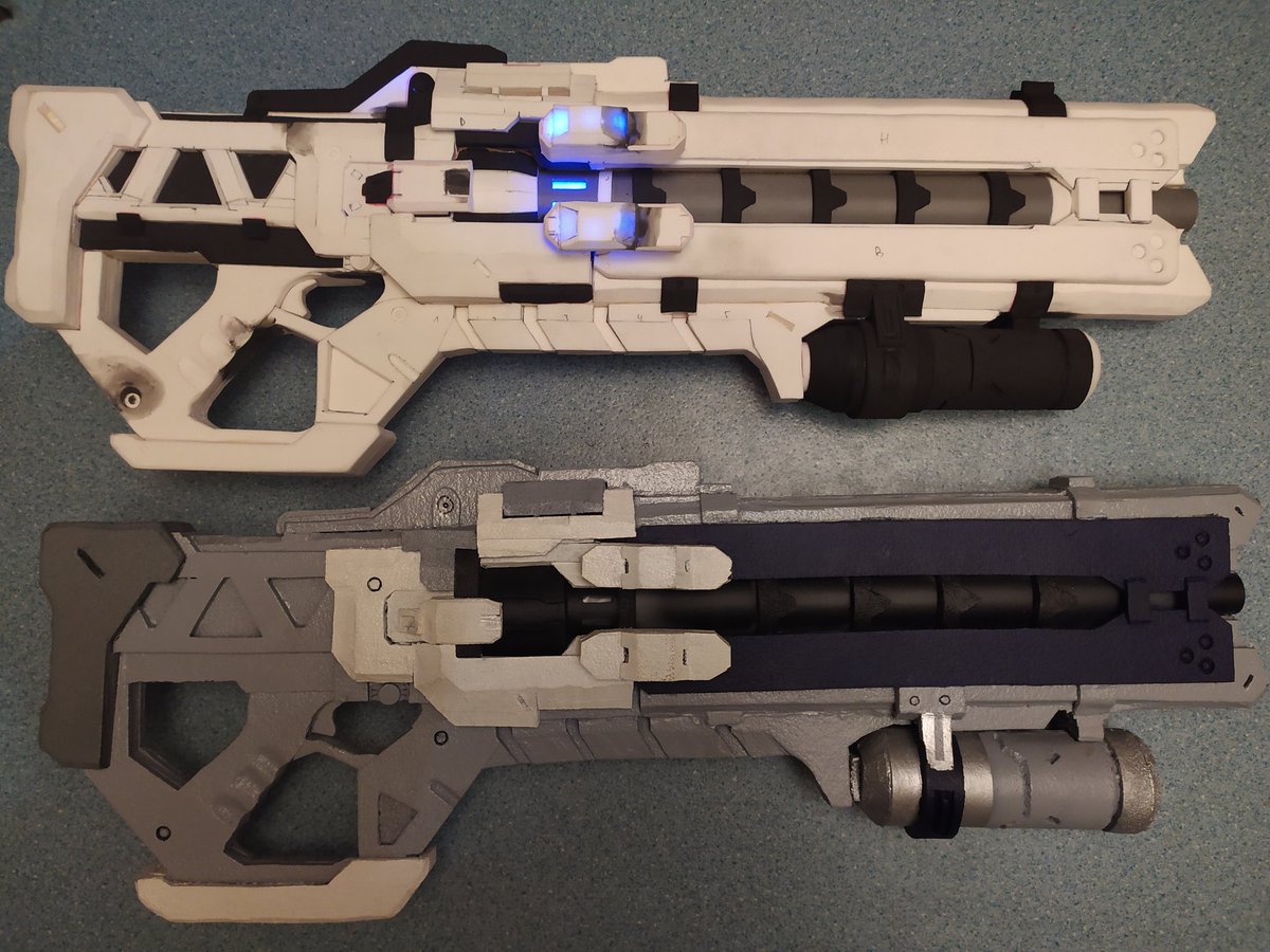 Petites photos pour montrer l'avancement de mon fusil de Soldier 76! Et d'autres pour faire une petite comparaison entre le premier fusil et le nouveau. #Overwatch#overwatchcosplay#cosplay#soldier76