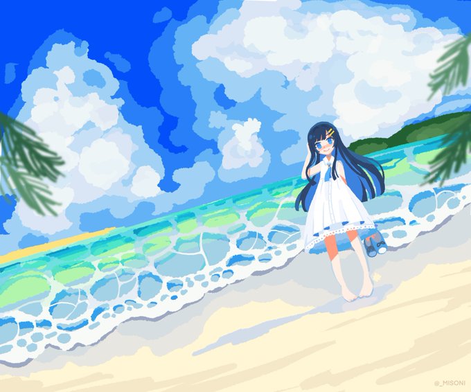 46 116 双葉湊音さんと夏の海辺☀️⛱️🏝️ #双葉湊音 #みなとイラスト 23/08/22 23:54
