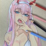 色鉛筆でゼロツー描きました! #模写 #ダリフラ