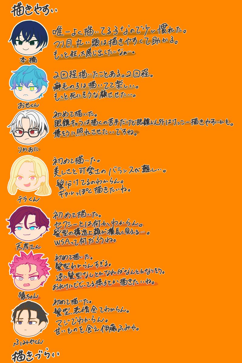 #フォロワーさんの推しが描きたい ありがとうございました〜!! 知らないキャラ,普段描かないキャラしかいなくて難易度高かった……🫠 また気まぐれでやります〜 twitter.com/_myon34_/statu…