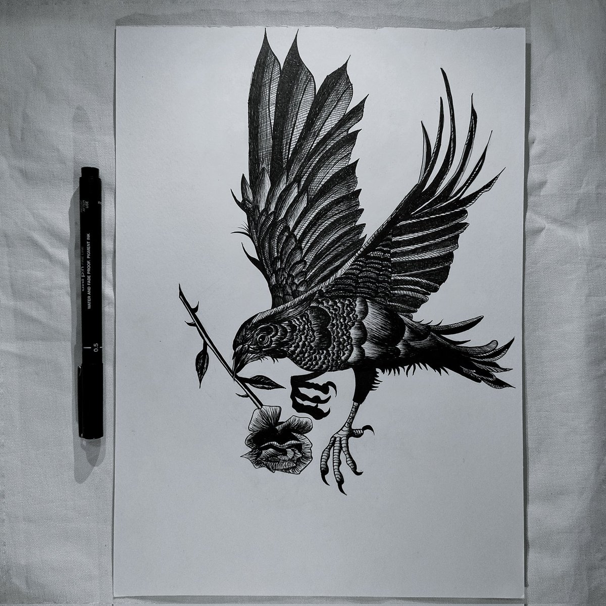 حمدالله ع السلامه Day 5 Raven #inktober #inktober2021 twitter.com/NadaaAlaa0/s…