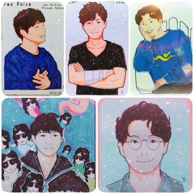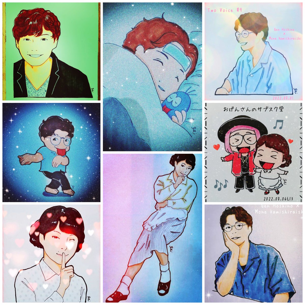 #今月描いた絵を晒そう 先月は途中から気持ちが落ちて 描けなくなってましたが温かい 励ましをいただき今月これだけ 描けました😊✨ 観てくださってる皆様本当に ありがとうございます☺️💕 源さんも㊗️復活♪ってことで 来月も何枚か描きたいなと思っ ているのでご笑納頂けたら幸い です😌💓 #星野源