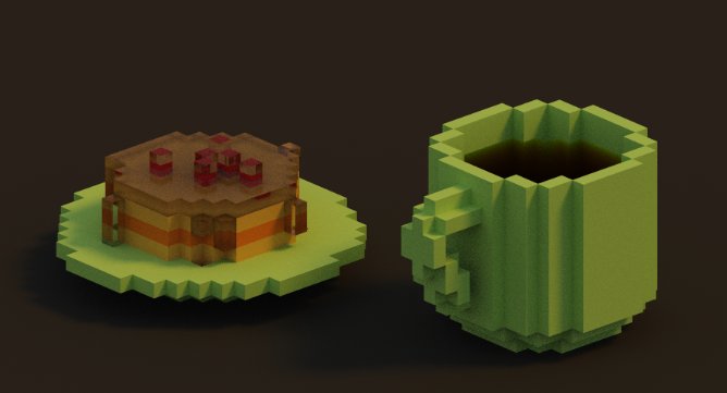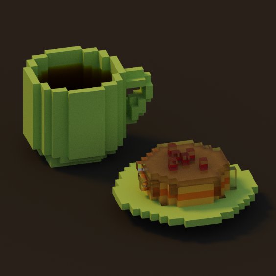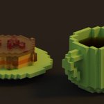 Prueba con una taza y unas tortitas, solo pienso en comida, no puedo evitarlo. #magicavoxel #voxelart