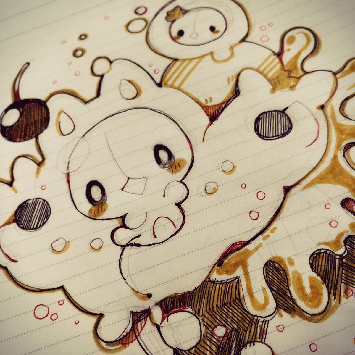 174 1228 透明水彩のオリーヴァとフワンテ🌸 23/02/13 23:09