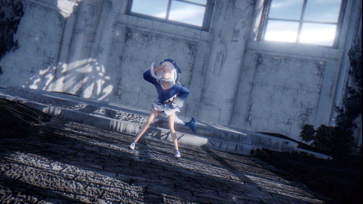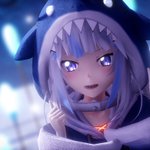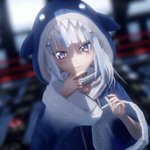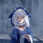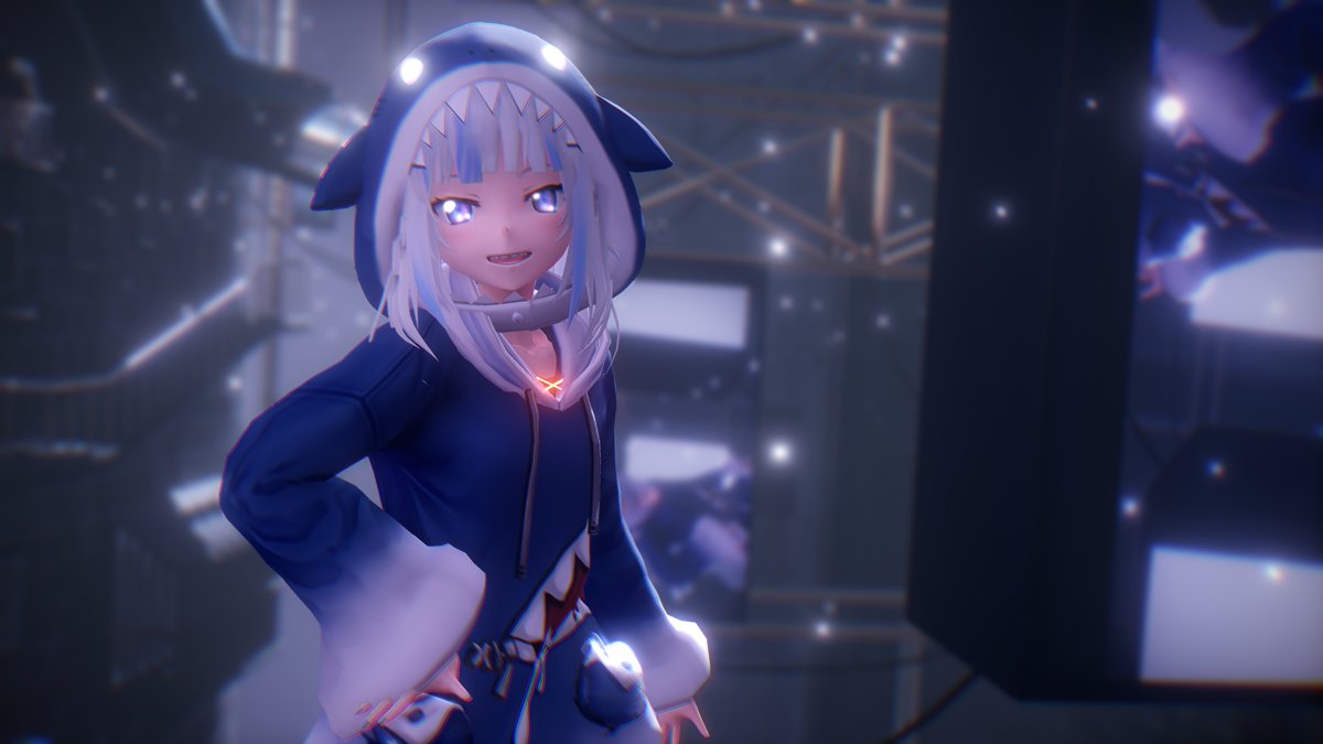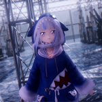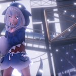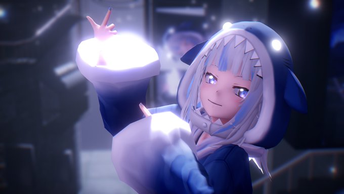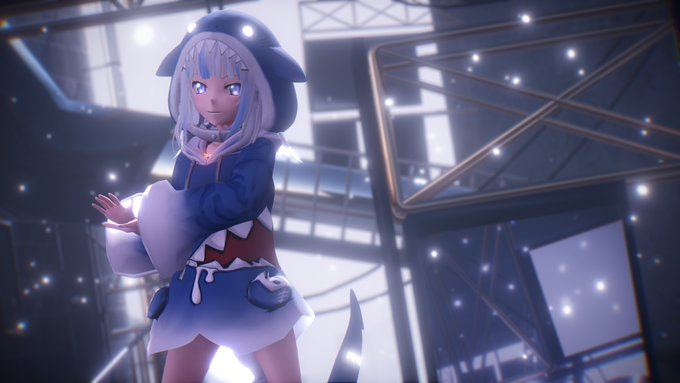 Gawr Guraさんの3Dモデル MMD用にblenderでボーンとウェイト調整してライティング外してeditorでスフィア無効、トーン無効。 瞳・ハイライト・尻尾・フード・胸のクロスに発光用のAL仕込んでます。 身長もちゃんと141cmだよ🦈 #gawrgura #gawrt #3DCG #3dmodeling #HololiveEN #ホロライブ