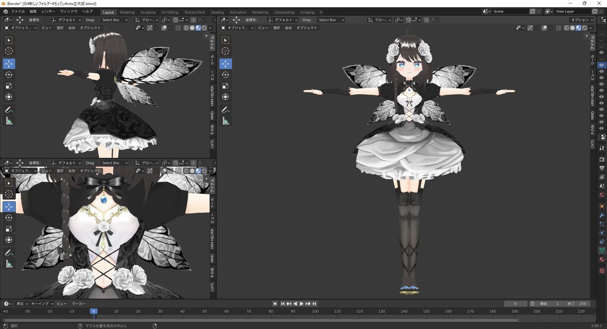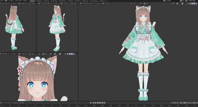 後は動かしてみておかしな所見つけて修正してくよー! 20万人めでたい☀️ #Nyaacho #Nachoneko #3DCG #3dmodeling #Blender3D #Vtuber