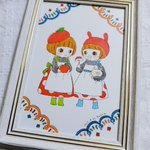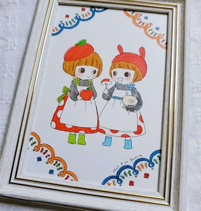 30daysdrawingで昨年描いた子たち🍎🐰💓 フレームにいれるとまた、いちだんと可愛くなりました🥰ゴールドのふちがいいアクセントになってます。 #ウクライナ支援チャリティーアート展 開催期間:6/6(月)~6/25(土) ※日曜、祭日、第3土曜日は定休日です