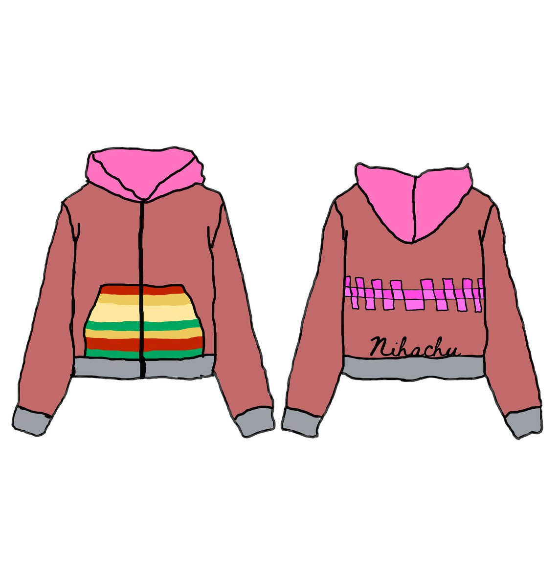 Today's hoodie is Nihachu's hoodie. The design and colouring on the pocket is based on the shirt on her date wear skin and the back design is based on her pink hair skins shirt. #fanart #nihachufanart #mcytfanart #dreamsmpfanart