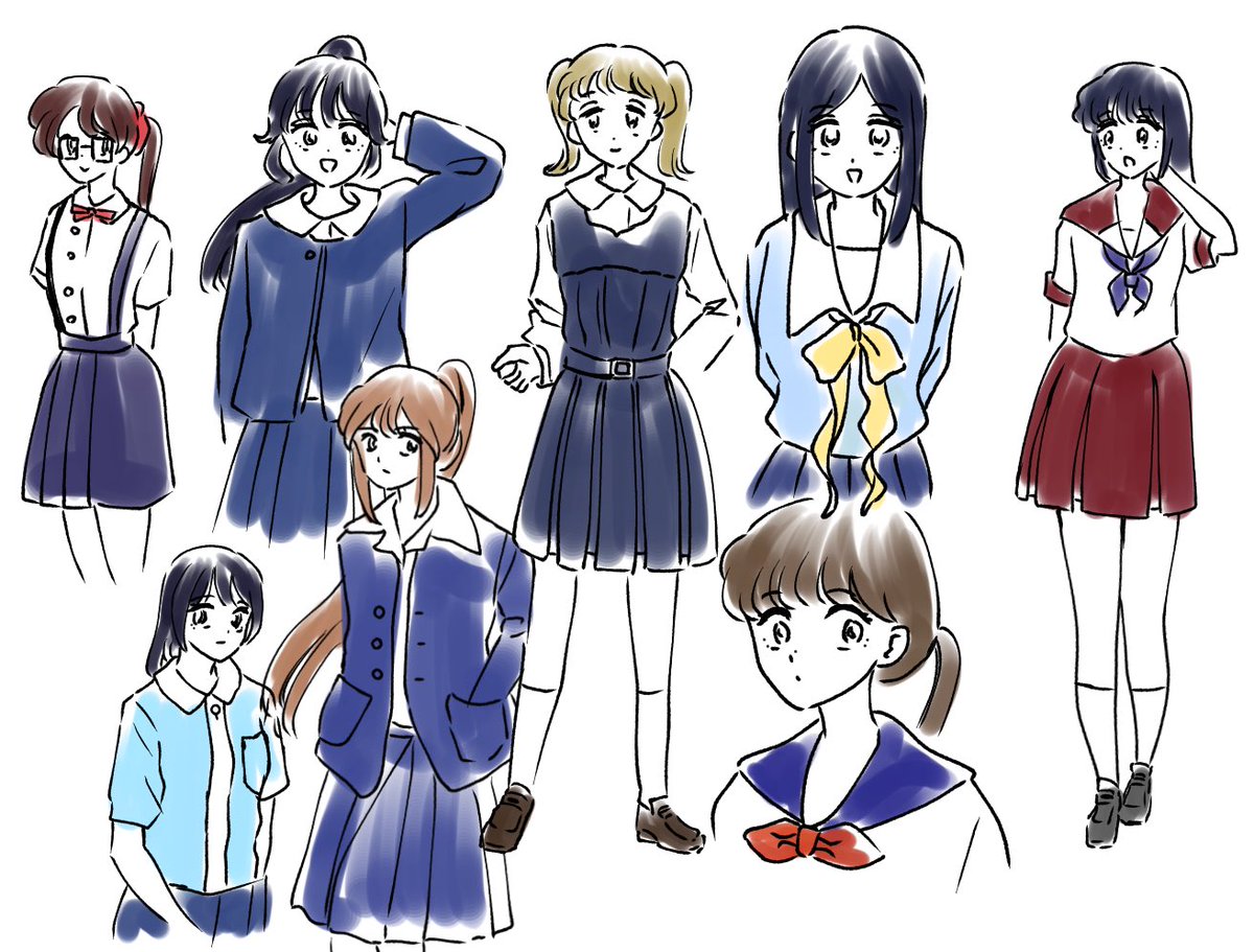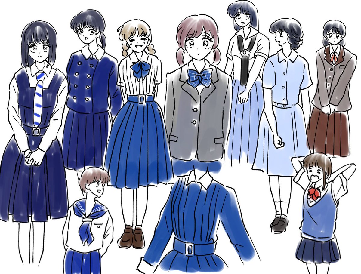 0 4 森伸之さんの「女子高生服手帖」を見ながらいいなと思った制服模写しました👗 色んな可愛い制服あって私もこんな制服着たかったって心から思った…… #illustration #イラスト 23/04/04 22:38