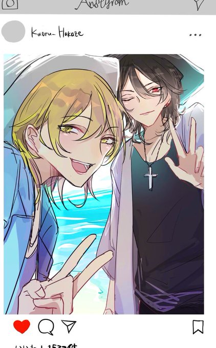二人ともおめでとうございます💜💛 今回の画集から一枚! #羽風薫誕生祭2021 #朔間零誕生祭2021