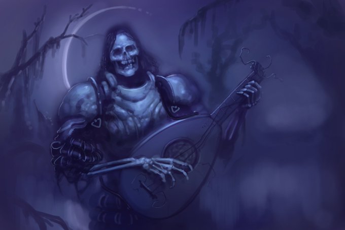 "On a clear calm night you can hear his bony pluckin', singing songs eternal for the dancing undead." 💀🎵💜 #illustration #digitalpainting #digitalart #mtg #tcg #dnd #horror