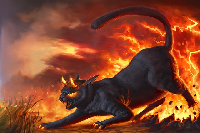 Your cat? As a MtG style demon creature? Oh yeah, we can absolutely do that! 🐈⬛🔥 (Art and set symbol designed by yours truly, proxy by client) #MTG #cats #digitalart #digitalpainting #illustraion #Commission #TCG