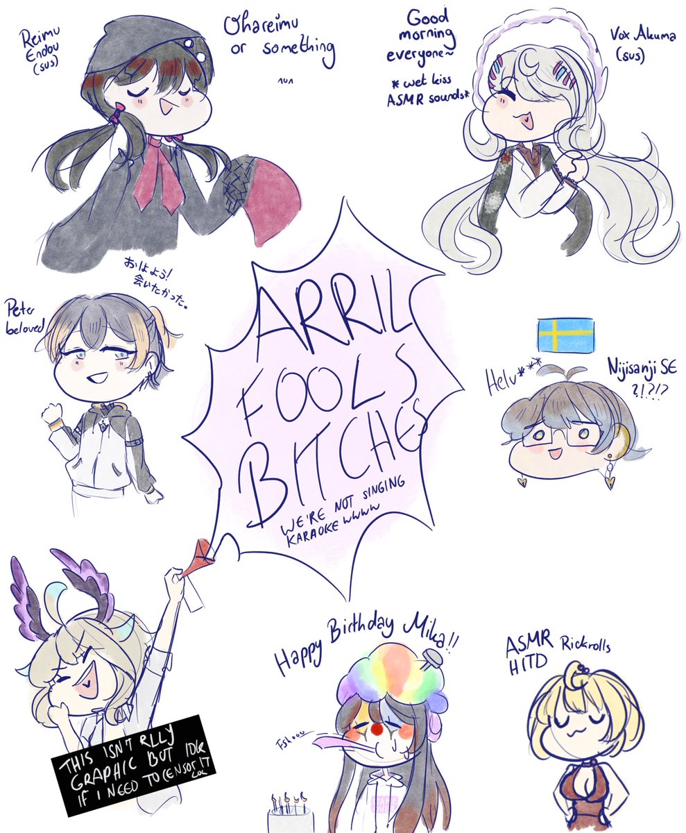 So the 1st of april nijisanji en/id/se experience so far huh I WONT LIE REIMU VOX GOT ME THE MOST I WAS SO CONFUSED ALSO HAPPY BIRTHDAY MIKA!!! #Akurylic #Reimural #Melatikaart #drawmillie #Palouette #Ikenography #petraart