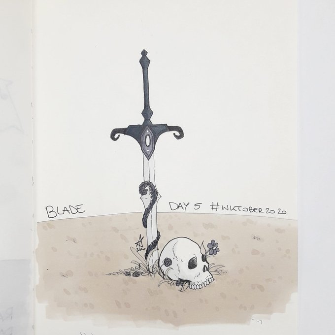 Actually, I think this is my best Inktober's drawing😍 DAY 5: BLADE #inktober #inktober2020 #inktoberhtt #day5 #blade #skull #plants #ink #liner #blackandwhite #illustration #sketch #myart #artwork #drawing #mydrawing #mydrawings #jakeparker #jakeparkerinktober