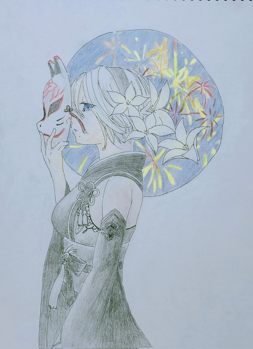 #ニーアオートマタ #人類に栄光あれ #色鉛筆画 『美しいものは、刹那に。』 *2B