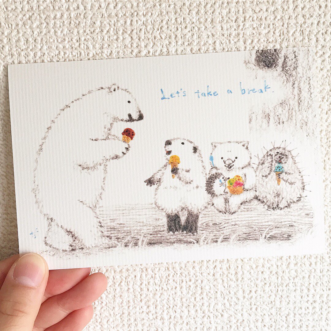 残暑お見舞い申し上げます まだまだ暑い日々ですが、なんとか元気に過ごせますように! ずんぐり〜ずたちは各々お気に入りの麦わら帽子をかぶりアイスを食べてます😋 #アナログ作家フェス #アナログ絵 ↑このタグ、凄いです…✨