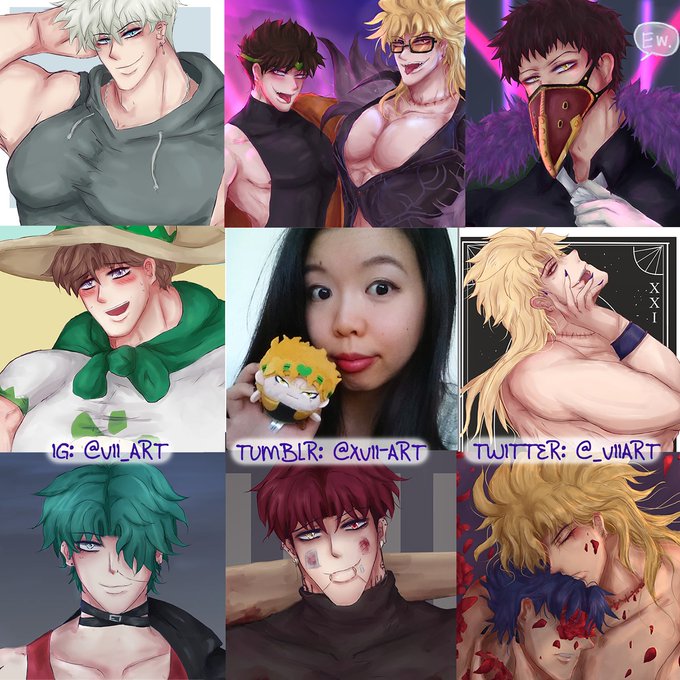 2 10 🙈eep....;; #artvsartist 🙈 🙈 👉👈 ....Just me surrounded by some of my favourite boys;; 😌💗 #artvsartist2020 #faceyourart #originalcharacters #overhaul #diobrando 20/12/17 09:27