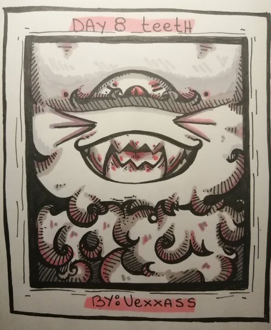 Inktober day 8 = Teeth Ow, hola chiquis! , como la han pasado el día de hoy??,Yo la pasé de lujo UvU. En éste dibujo quise poner a ikky, otro de mis OC, tan sólo por qué siempre muestra sus dientes(colmillos). #inktober2020 #inktober2020day8 #inktober2020teeth #inktober