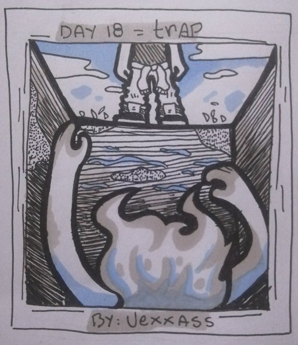 Inktober day 18 = trap Hola hermosos!~ ahora subo otra vez los dibujos del inktober en conjunto!. (y derrepente, ella cayo en la trampa, un gran pozo y una persona mirando desde arriba como había resultado el plan) #inktober2020 #Inktober #inktober2020day18 #inktober2020trap