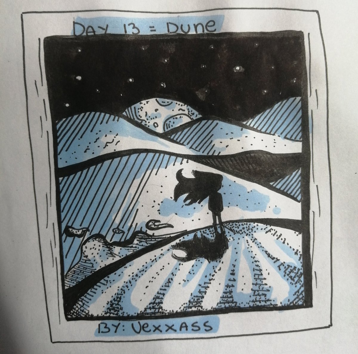 Inktober day 13 = Dune El dibujillo del inktober del día de hoy UvU, realmente encuentro que con tinta en frasco el color negro es mucho mas fuerte. #inktober2020 #Inktober #inktober2020day13 #inktober2020dune