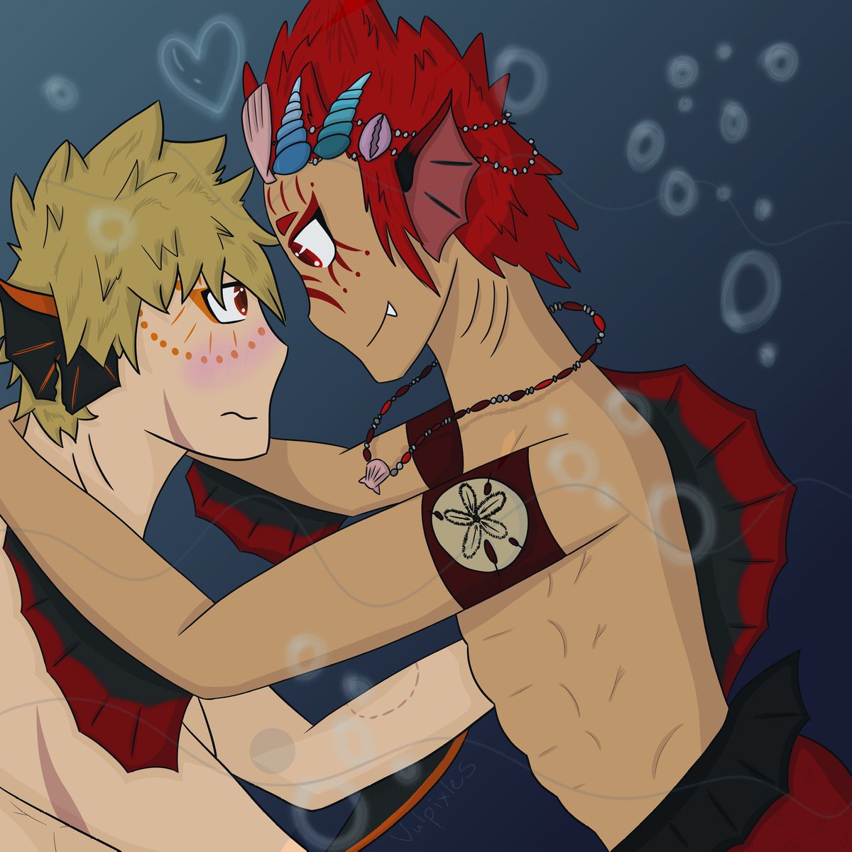 Just a #mermay drawing I did of #kiribaku I love these two so much and I love mermay. This has a whole story with it. #kirishimaeijiro is a prince and #bakugokatsuki is his guard. Kiri falls in love with his very rough guard, and Bakugo is caught between his heart and his duties.